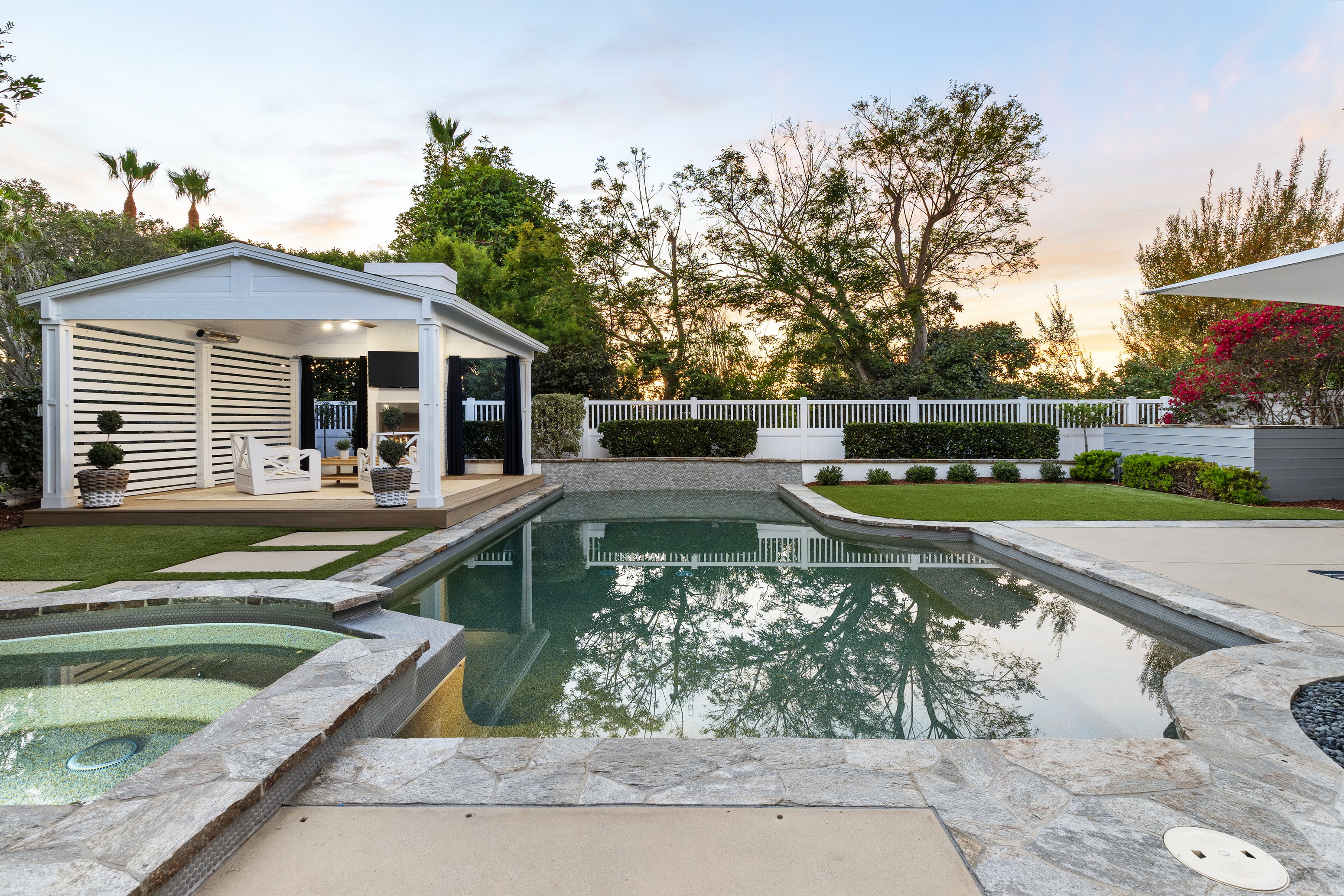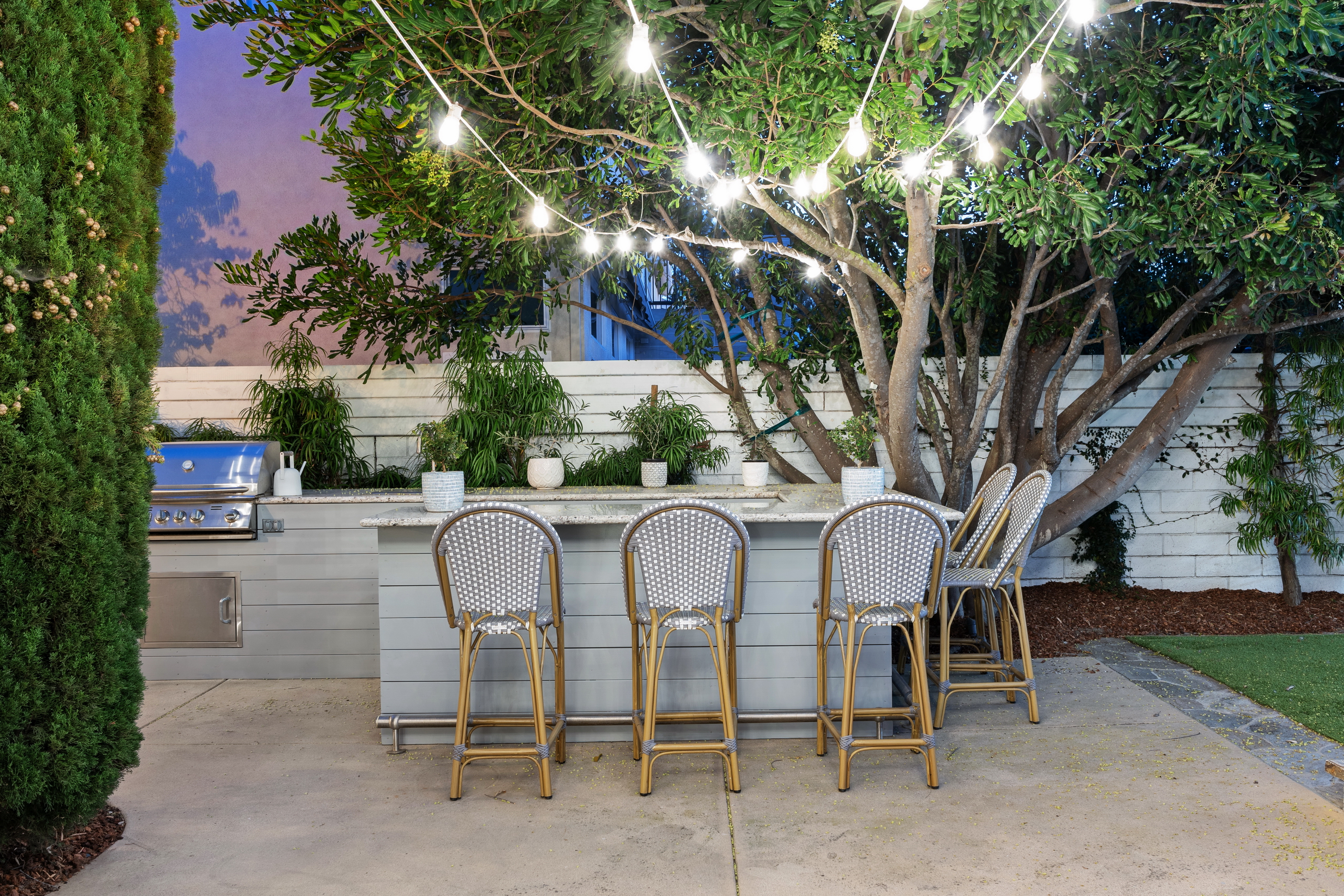 The outdoor spaces are equally enchanting. A lush, garden-like backyard provides the perfect backdrop for al fresco entertaining, with a pavilion and cozy fireplace inviting relaxation on cool summer evenings. This is Southern California living at its finest.