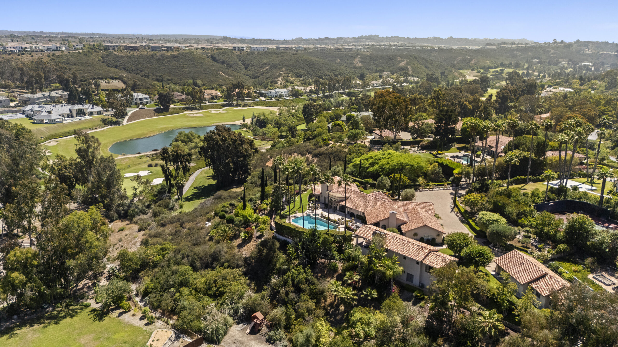 Nestled at the end of a cul-de-sac in the highly coveted gated community of Rancho Diegueno Estates, this single-level estate offers an extraordinary blend of serene privacy and sweeping fairway views over the Del Mar Country Club. Encompassing 6,401 square feet on over 2 acres of verdant gardens and mature fruit orchards, it is an embodiment of purposeful elegance.