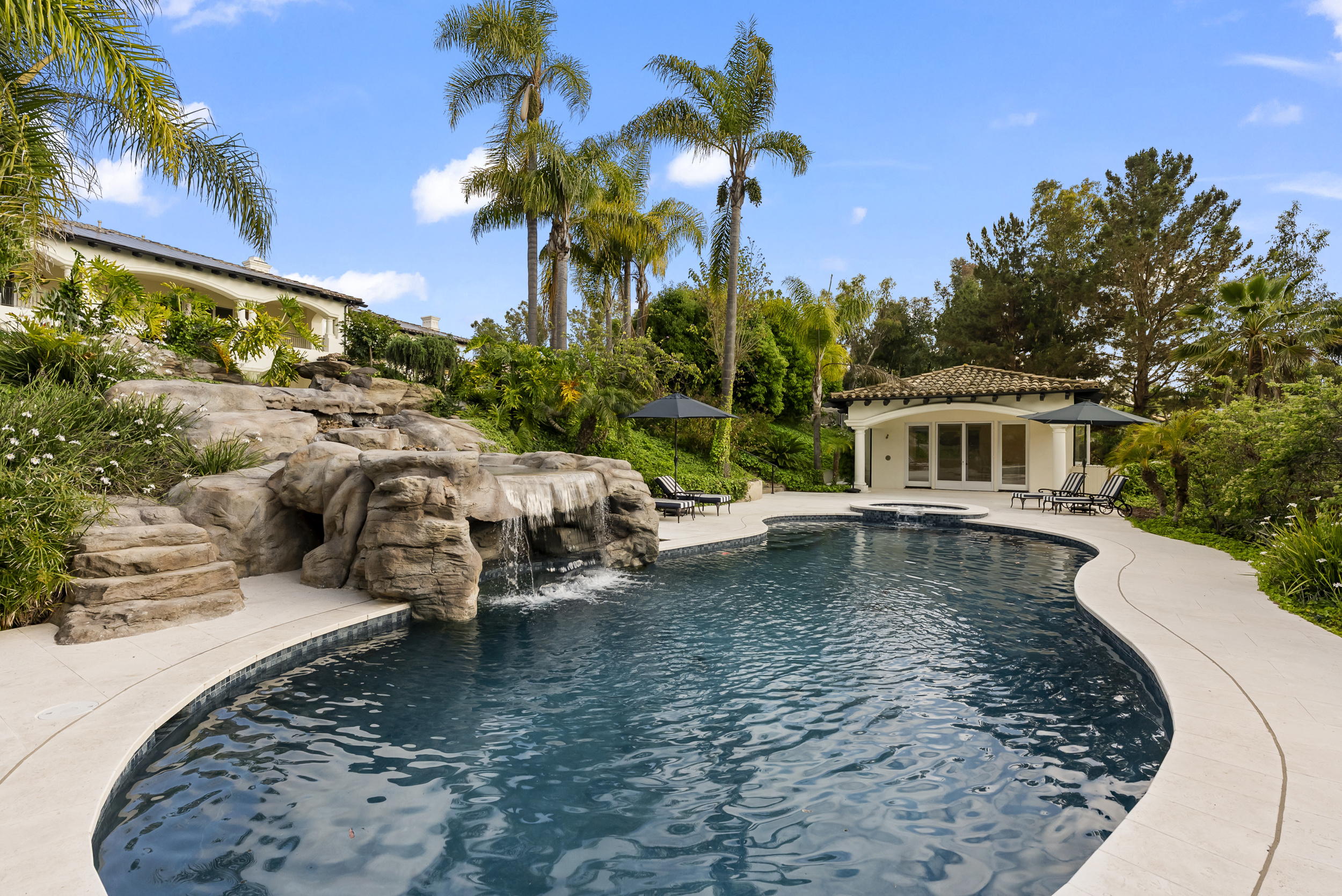 Outside, the estate transforms into a private resort. A resurfaced saltwater pool with new coping and limestone decking is framed by lush lawns, smart landscape lighting, and tranquil koi ponds that invite slow mornings and peaceful reflection. The putting green, detached guest house, epoxy-coated oversized 1246 sf garage, and new wrought iron smart entry complete this move-in-ready sanctuary.