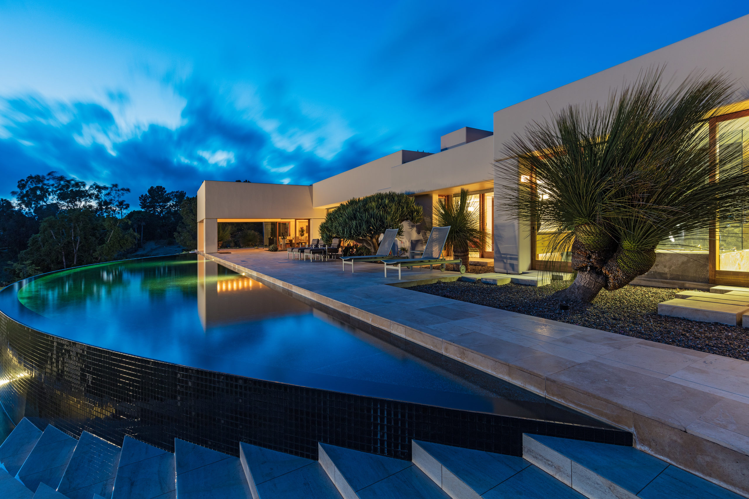 The Promontory in Rancho Santa Fe, a breathtaking contemporary estate designed by renowned architect Wallace Cunningham, recently sold, marking one of the most significant transactions in Rancho Santa Fe real estate. Situated on 5.21 acres in the prestigious Covenant, this single-level masterpiece was designed for seamless indoor-outdoor living, featuring floor-to-ceiling windows and sliding glass walls that framed panoramic sunset views over mountains and valleys. The zero-edge crescent-shaped saltwater pool served as the centerpiece of this architectural marvel, offering a tranquil retreat with mesmerizing vistas. Spanning 8,083 sq. ft. of interior living space plus 3,644 sq. ft. of covered outdoor/open living areas, the residence featured 4+ bedrooms and 6 baths, including a gorgeous master suite with dual walk-in closets, a spa-like bath, a gym with a private patio, and direct access to the pool. Designed for luxury and entertaining, the home boasted a state-of-the-art chef’s kitchen with Gaggenau, Miele, and Sub-Zero appliances, a butler’s pantry, a wet bar, a formal dining room with built-ins, and a game room with Sub-Zero wine refrigeration storage. A guest suite with a private kitchenette and a secluded courtyard with a fireplace further enhanced the estate’s appeal. With solar powering both the home and pool, this residence combined modern sustainability with timeless elegance. Located just minutes from fine dining, shopping, equestrian trails, and one of California’s top-rated private golf courses, this extraordinary estate’s sale cemented its status as one of Rancho Santa Fe’s most coveted properties.