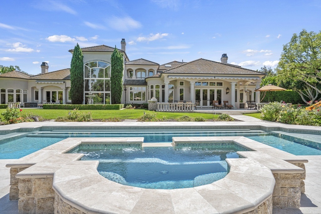 SOLD! Behind the gates of Fairbanks Ranch, this exquisite 6+ bedroom French Manor estate sits on a prime corner lot with dual private cul-de-sac entrances. Completely renovated with timeless quality and premium designer materials, the home features an open, sun-filled layout. The main level offers four bedrooms, a library, an office, and a bonus room ideal for a gym or guest suite, while two additional upstairs bedroom suites include a private family room with garden views. Lush grounds boast ma...