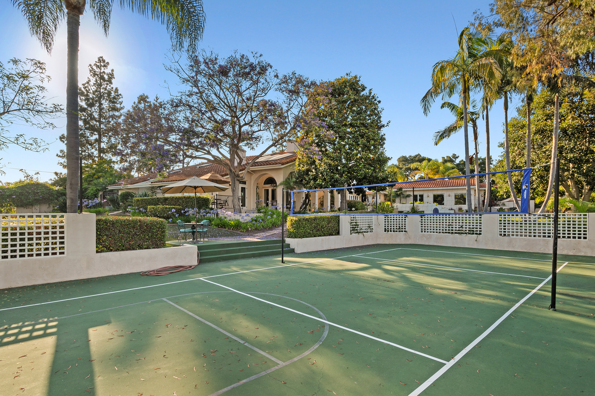 SOLD! This stunning single-level Mediterranean estate showcased manicured grounds, two pools (a family pool and lap pool), a pickleball court, and expansive grass yards with panoramic views stretching from Black Mountain to Mt. Soledad. The main residence featured three en-suite bedrooms plus an office, while an attached guest suite with its own kitchen and bath added convenience. A separate guest house with vaulted ceilings embraced the serene setting and picturesque views. Ideally located just...