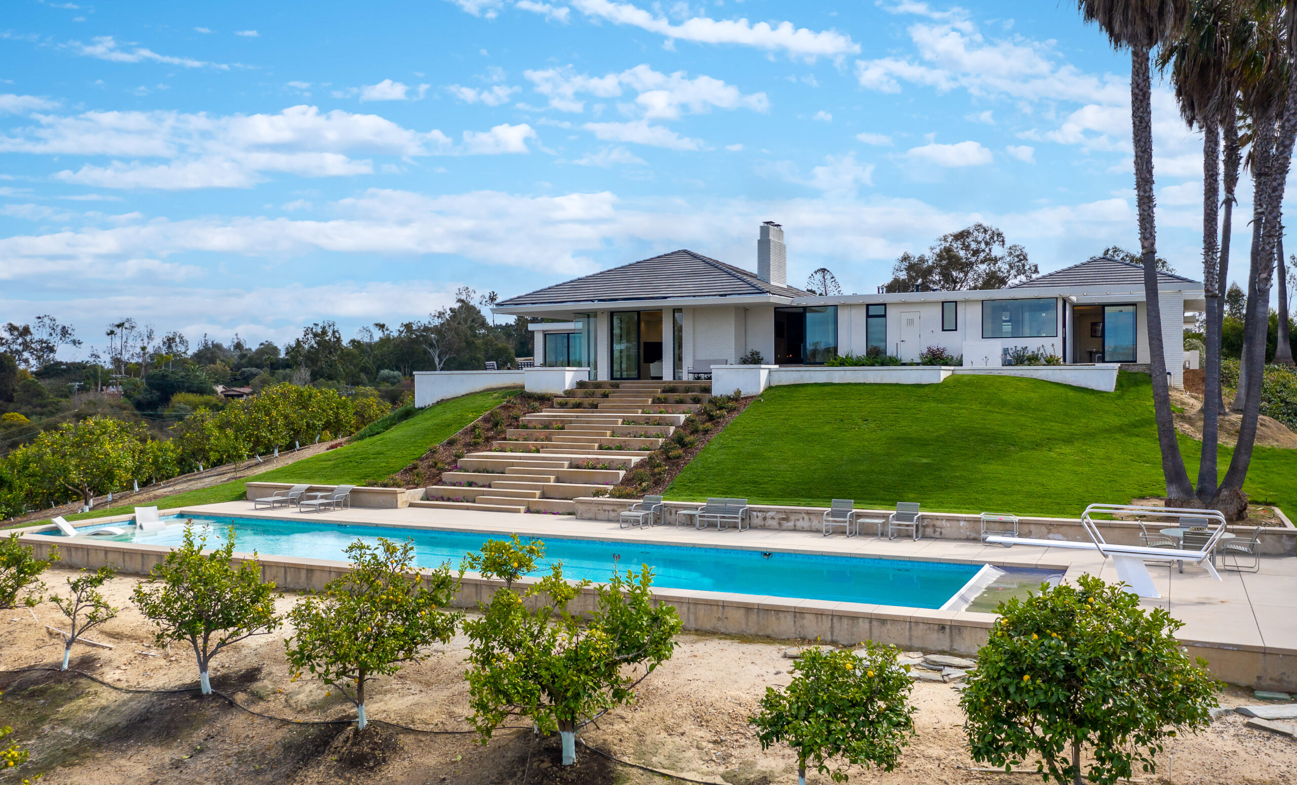 SOLD! A rare architectural masterpiece, this single-level modern estate perched atop 3+ acres with panoramic golf and mountain views on Rancho Santa Fe’s west side captivated buyers with its impeccable design. Originally crafted by famed Hollywood architect Hal Levitt, the home was reimagined in a 5-year rebuild, featuring floor-to-ceiling Fleetwood glass windows, a gourmet kitchen, and a serene interior courtyard with a firepit and Koi pond. The luxurious primary suite included a private outd...