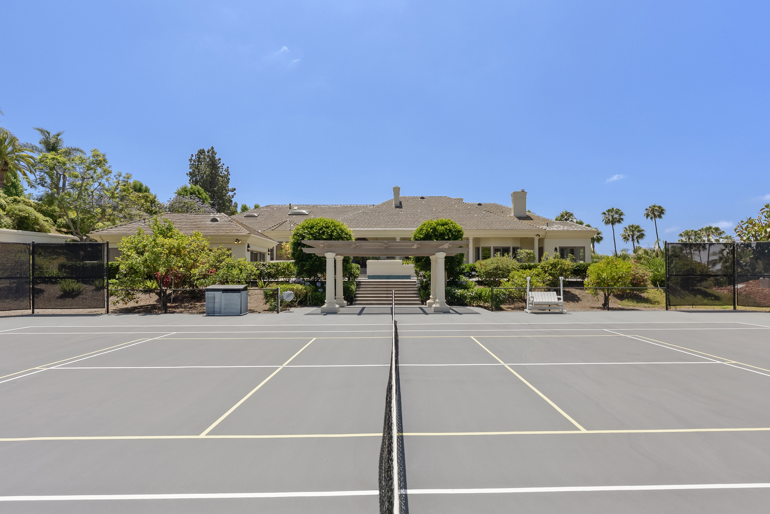 The estate’s expansive grounds provide an idyllic setting for both entertaining and private relaxation. Enjoy breathtaking sunset views from the western-facing porte-cochère or savor tranquil vistas of the Rancho Santa Fe hills from the primary suite's private patio. Premium on-site amenities include a pristine pool, professional tennis court, gym, a private sauna and a pool house with bathroom and kitchen creating an unparalleled resort-style living experience.