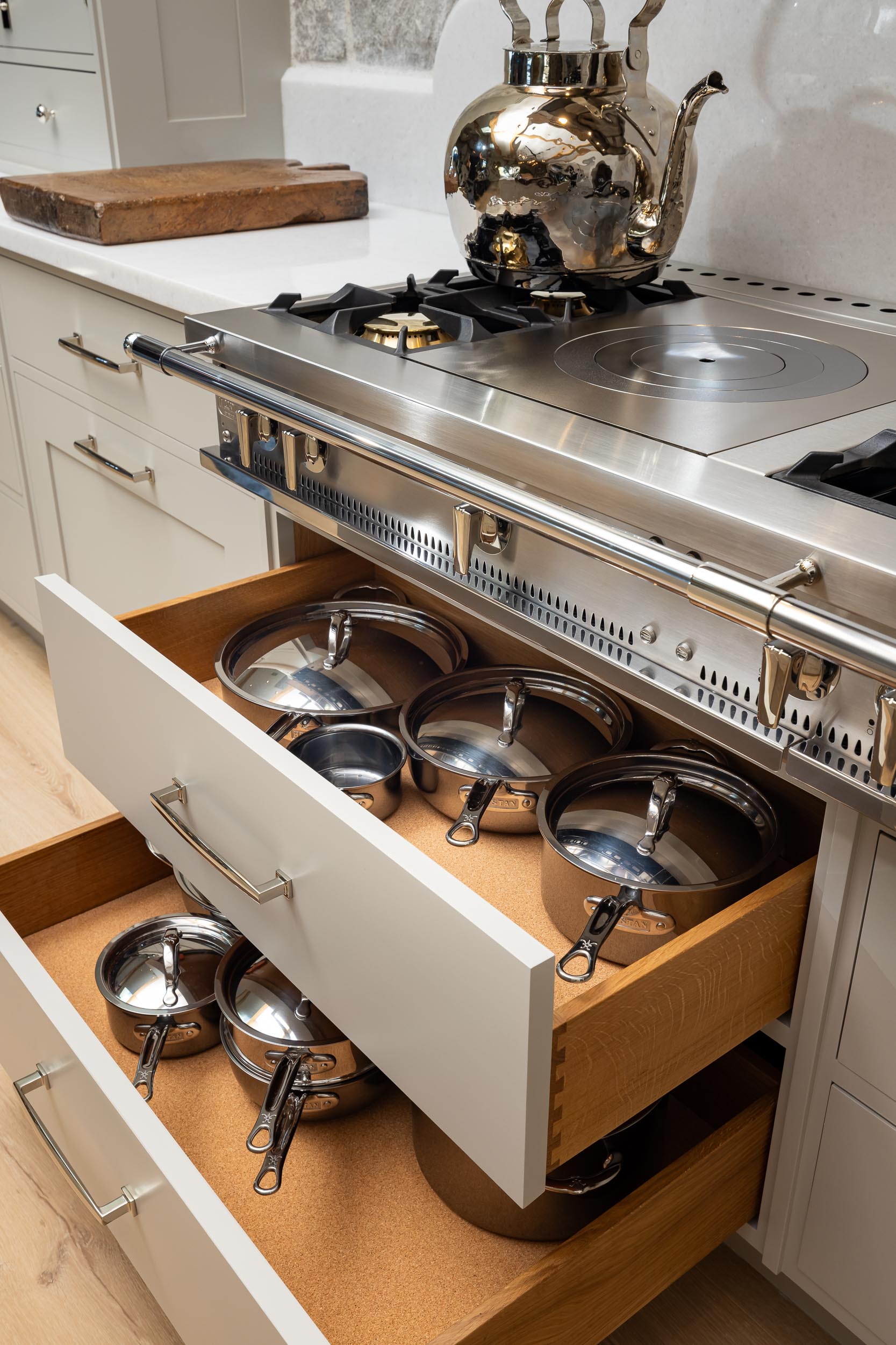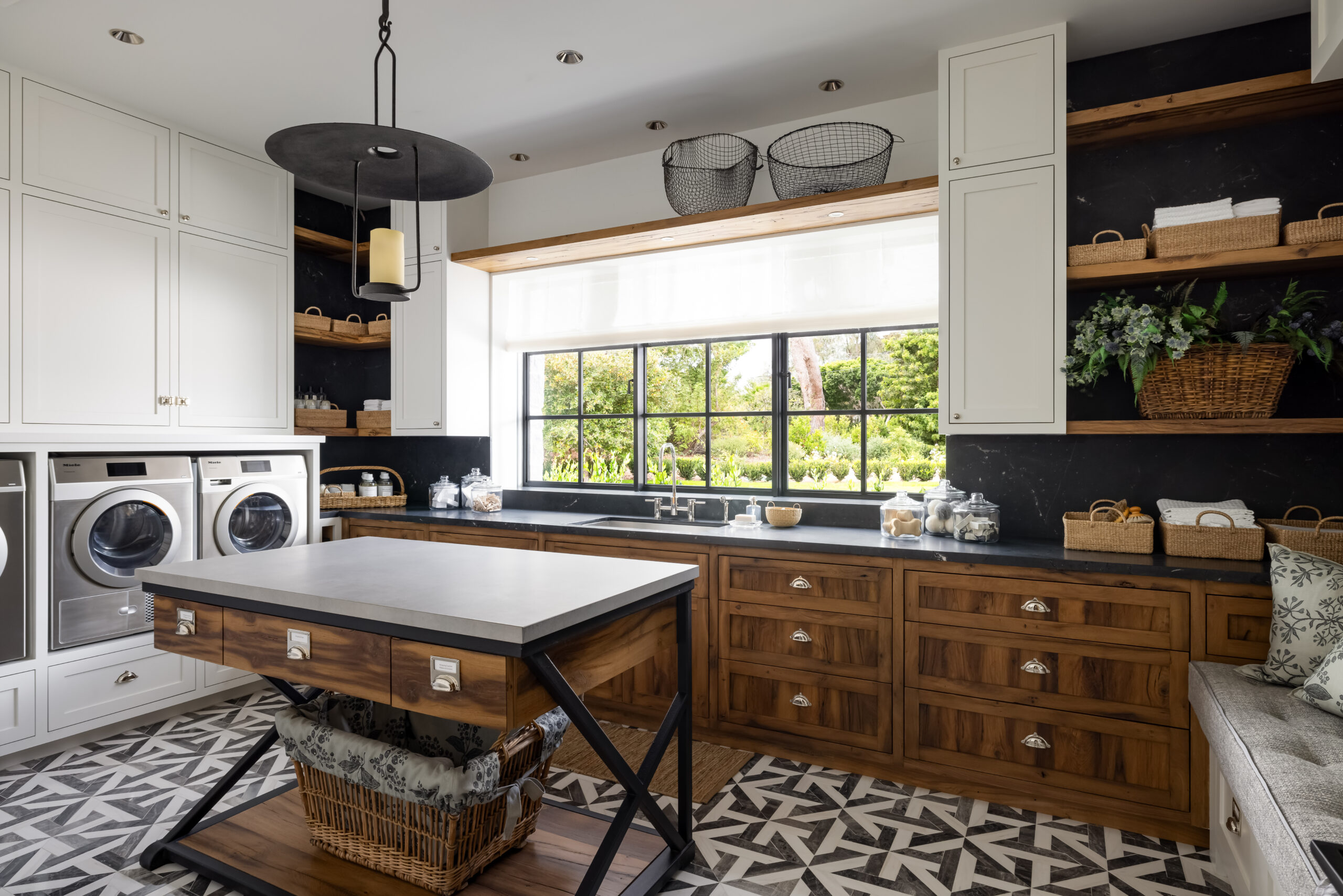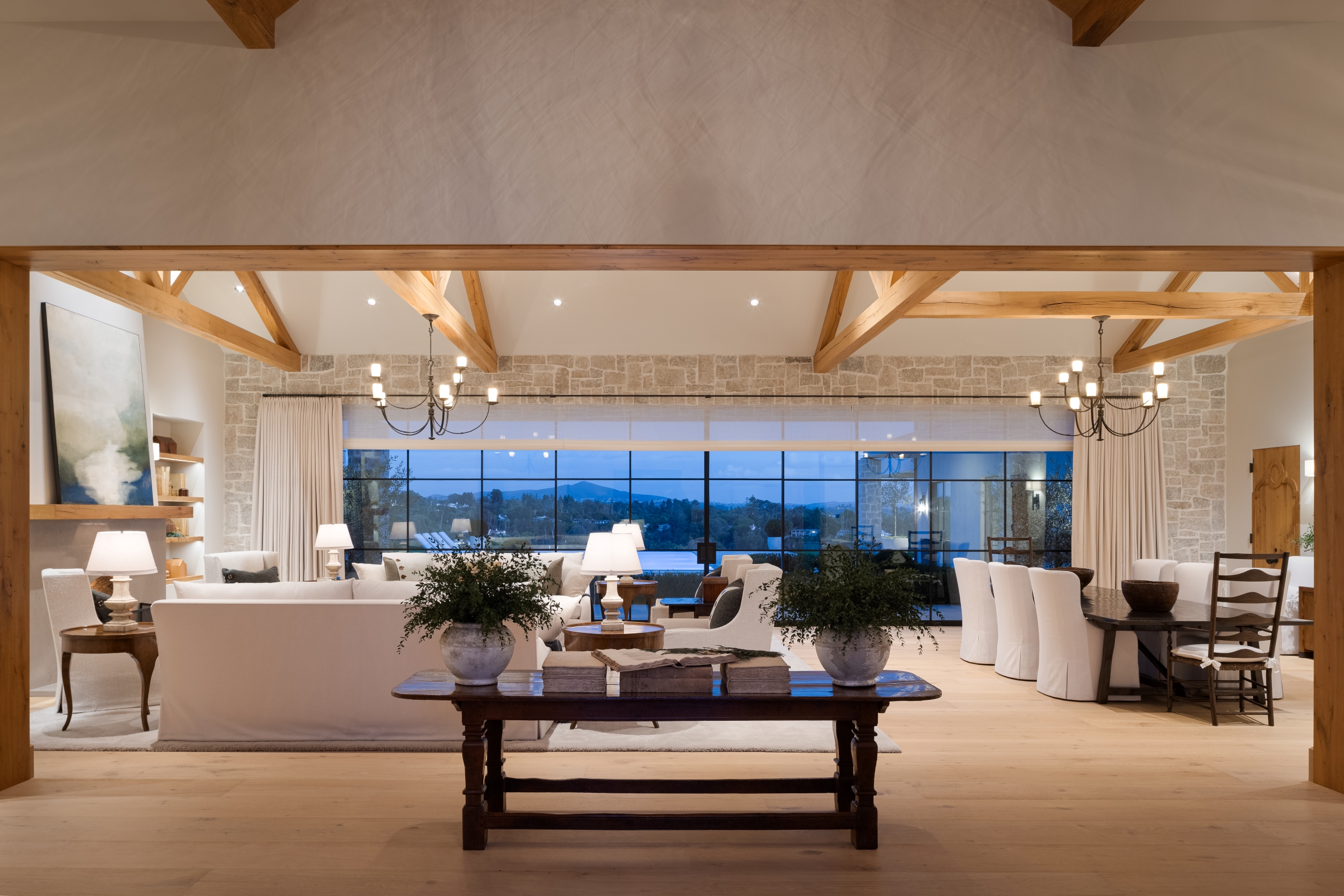 Set on 3.66 acres in the prestigious Rancho Santa Fe Covenant, this 10,363 sq. ft. statement residence boasts 5 bedrooms, 5 full and 3 half baths, a dedicated office and detached guest house. From the moment you arrive, the estate’s hand-selected antique barrel roof tiles from the South of France, signal an extraordinary level of detail. Antique oak beams, while hand-forged steel-framed windows and doors flood the home with natural light. The great room, anchored by a custom fireplace lined with reclaimed black firebrick, flows effortlessly into the exquisite Christopher Peacock kitchen, where La Cornue and Miele appliances, hand-painted cabinetry, and Afyon white marble countertops create a space that is as functional as it is breathtaking.