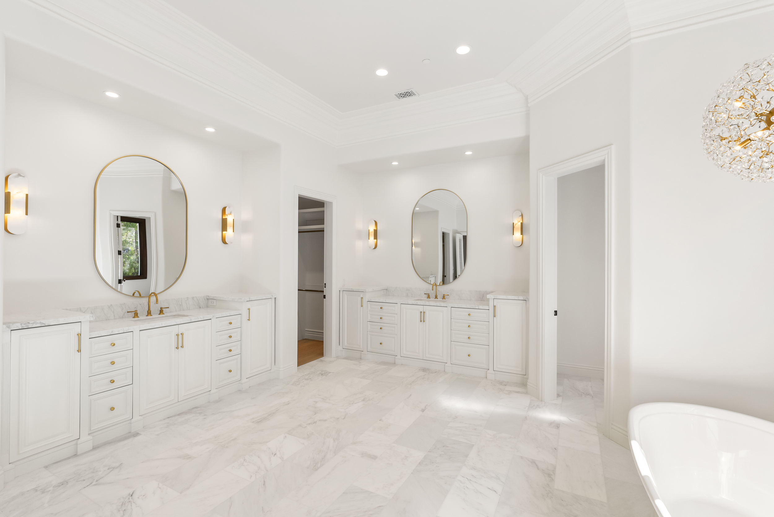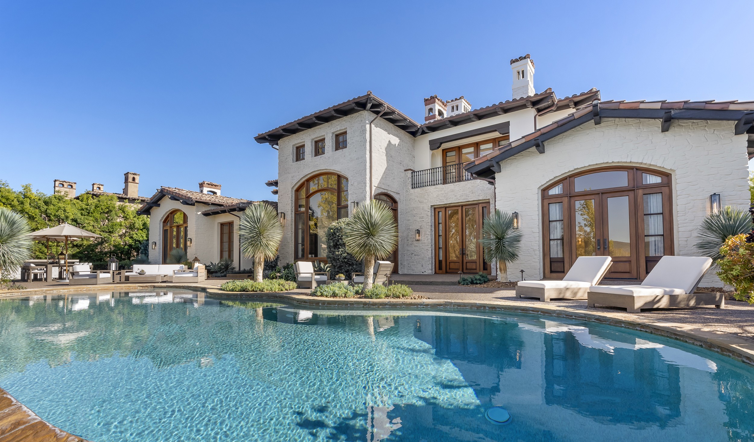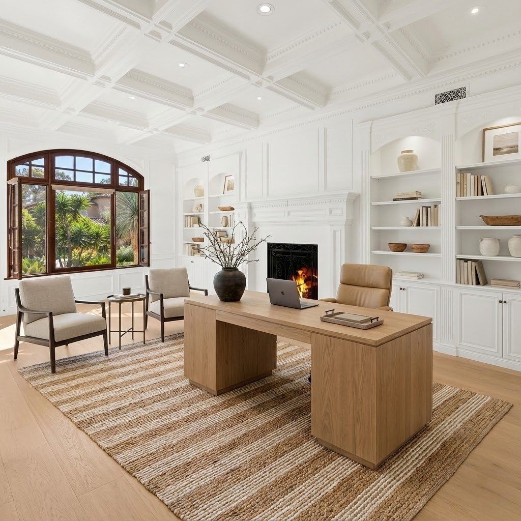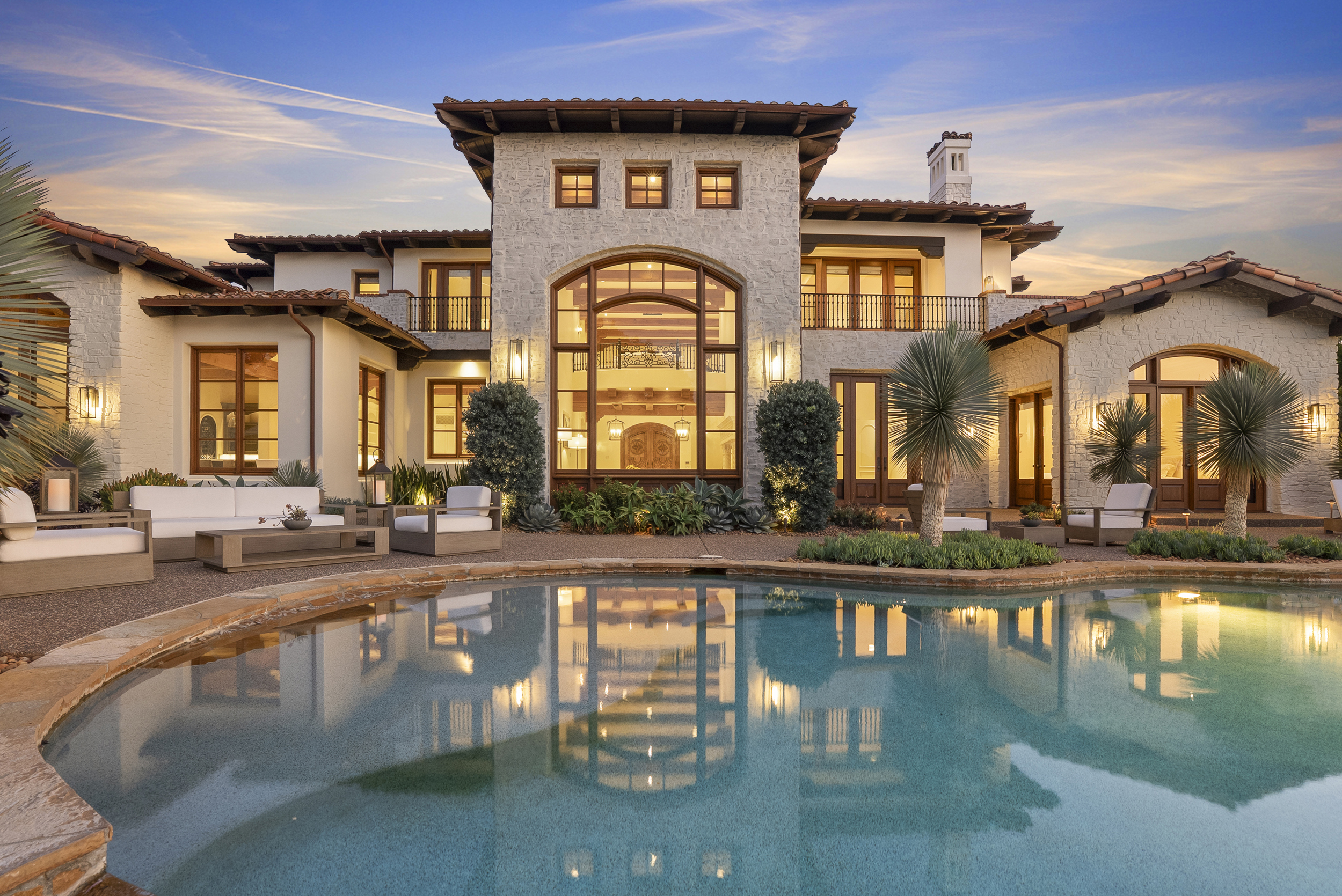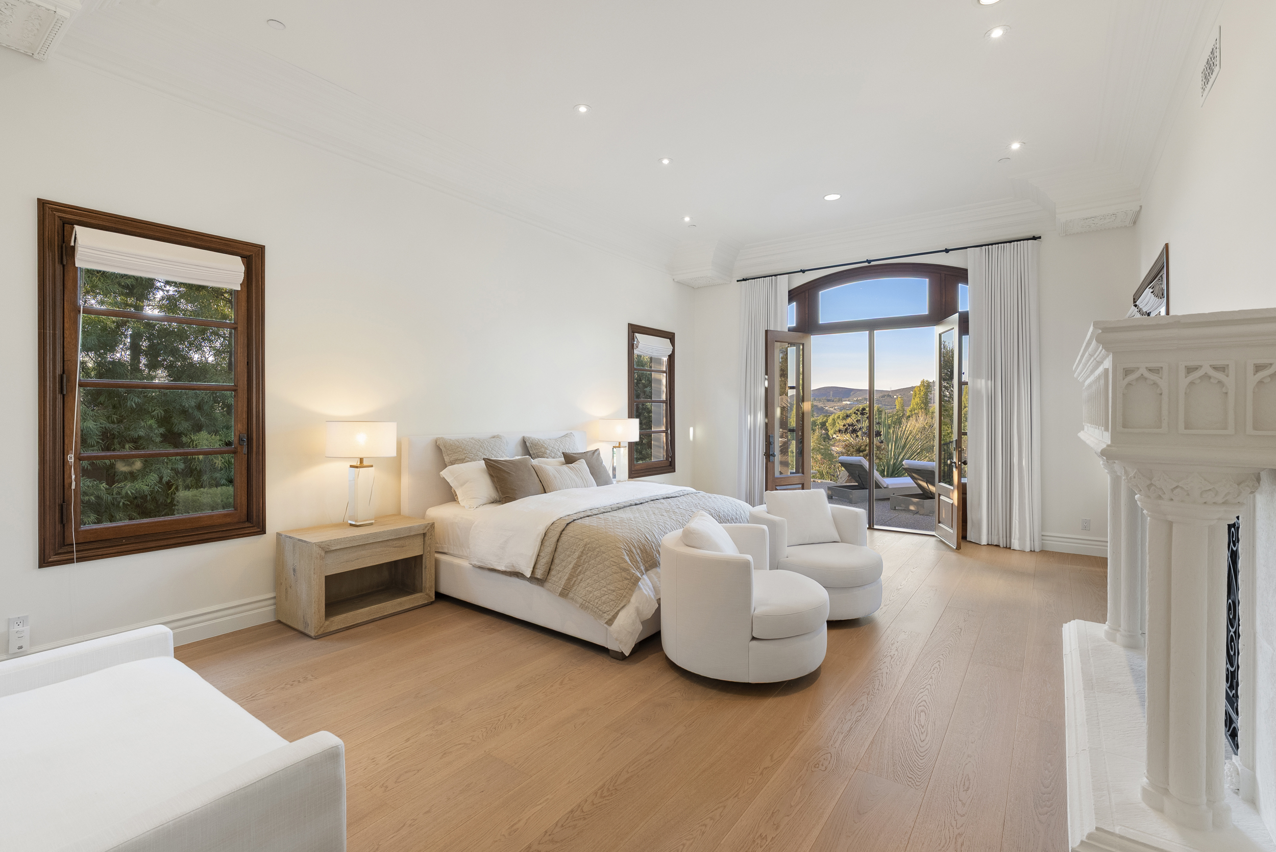 Inside, natural light pours through expansive windows and French doors that open to the golf course, creating a perfect indoor/outdoor connection ideal for both daily living and entertaining. Every finish was chosen with care—from hand-finished limewashed fireplaces and European white-oak floors to Italian marble countertops, burnished-brass fixtures, and designer lighting. The reimagined kitchen serves as the heart of the home with a farmhouse-style sink, premium appliances, oversized walk-in pantry, bar, and temperature-controlled wine cellar that make entertaining effortless. Additional spaces include a built-out home theater, elegant office, and a separate guest wing with private access that offers versatility for guests, multigenerational living, or creative use.