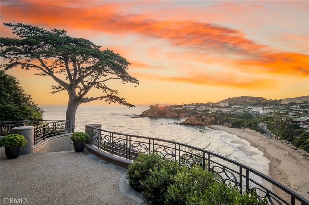 Perched atop a cliff in the prestigious enclave of Emerald Bay, this extraordinary estate, among merely three with direct private access to the waters below at Irvine Cove, offers boundless vistas of the ocean, Catalina Island, Palos Verdes and roaring whitewater just beneath you. Designed with intention to capitalize on both, the ever-changing views & privacy from neighbors, this residence occupies one of the most expansive lots within Emerald Bay as well as the Coast with nearly 100’ of frontage. Multiple terraces, mature landscaping, and a cove-facing hot tub were meticulously envisioned to maximize the natural slopes and endless views of crashing waves. A spectacular towering cypress greets you as you enter the estate while sea lions, dolphins, ospreys, yachts, and more entertain. A soft contemporary design intersects with functionality, resulting in inviting interiors that lend themselves to everyday living and entertaining. The different wings add privacy for family and guests. Soaring ceilings create voluminous spaces throughout the residence. Walls of glass opening to the terraces bring the Pacific Ocean and beyond indoors and it feels as if you’re sitting on top of the water. The muted palette of natural materials such as wood and limestone, curated to not compete with the coastal beauty, creates a soothing environment. Grand in scale, the main areas of the property as well as all bedrooms face outwards towards the multiple water-facing terraces. The owners’ suite spans nearly an entire level of the home, creating a private retreat with a spectacular view balcony. The rarity of this vastness while designed to optimize privacy from neighbors of this oceanfront estate cannot be overstated.