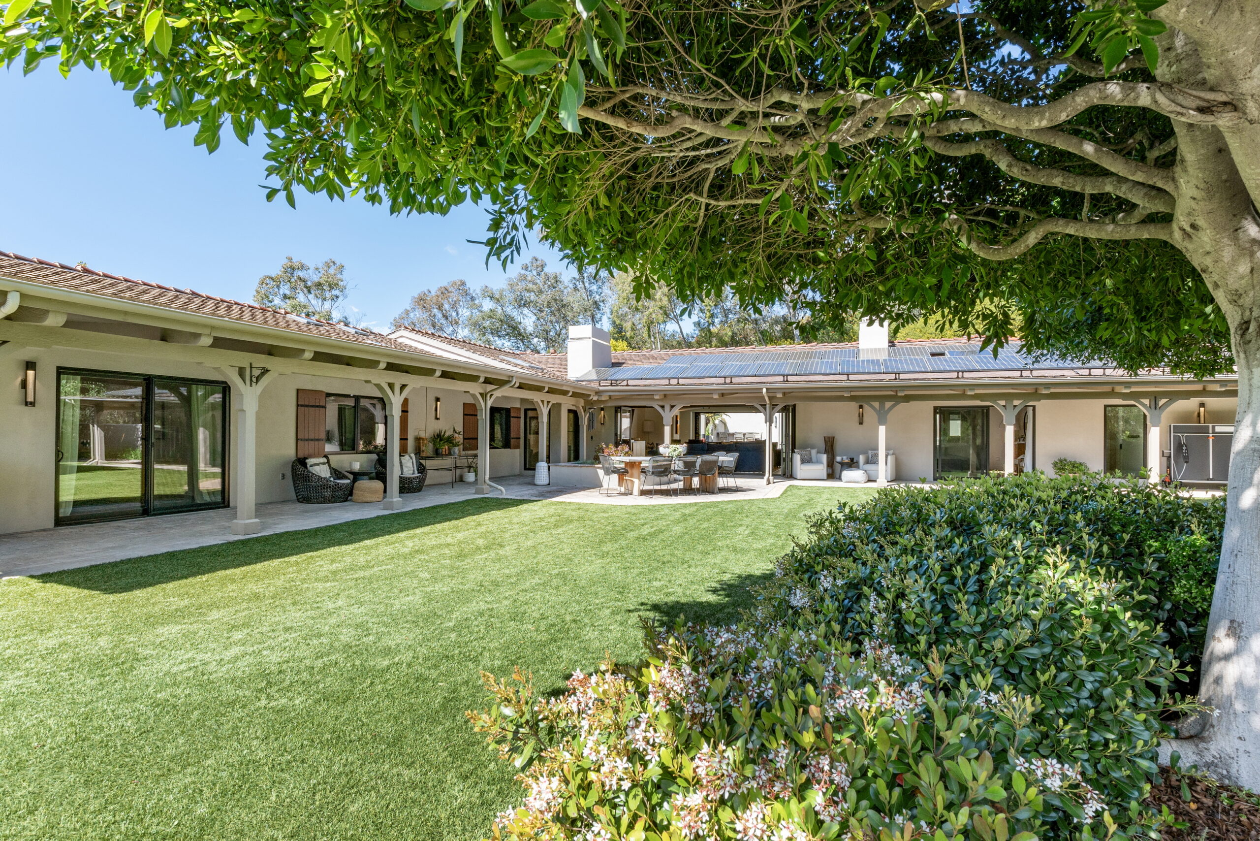 SOLD! Nestled on 2.55 serene acres in the highly coveted West Side of the Rancho Santa Fe Covenant, this completely renovated estate offers the perfect blend of luxury, privacy, and indoor-outdoor living. The 5,788 sq. ft. single-level main residence features 3+ bedrooms, 4.5 baths, a designer chef’s kitchen, custom 18’ La Cantina accordion doors, and a primary suite with dual baths and custom closets. A 1,000 sq. ft. two-story guest house with 1 bed, 1.5 baths adds flexibility for visitors....