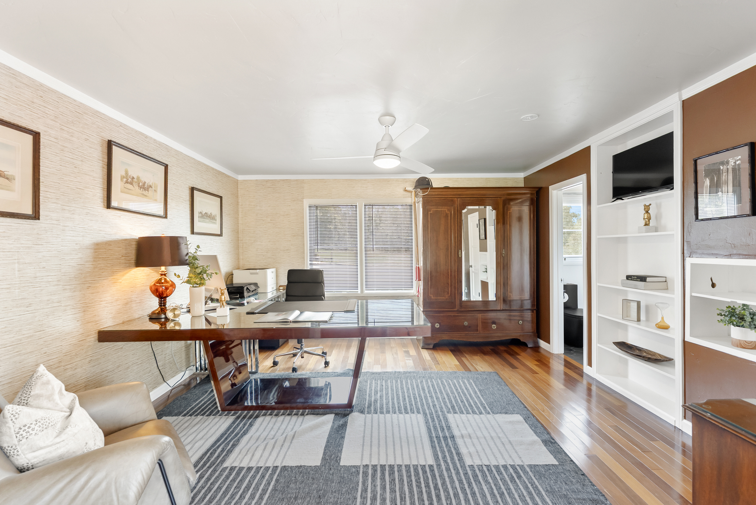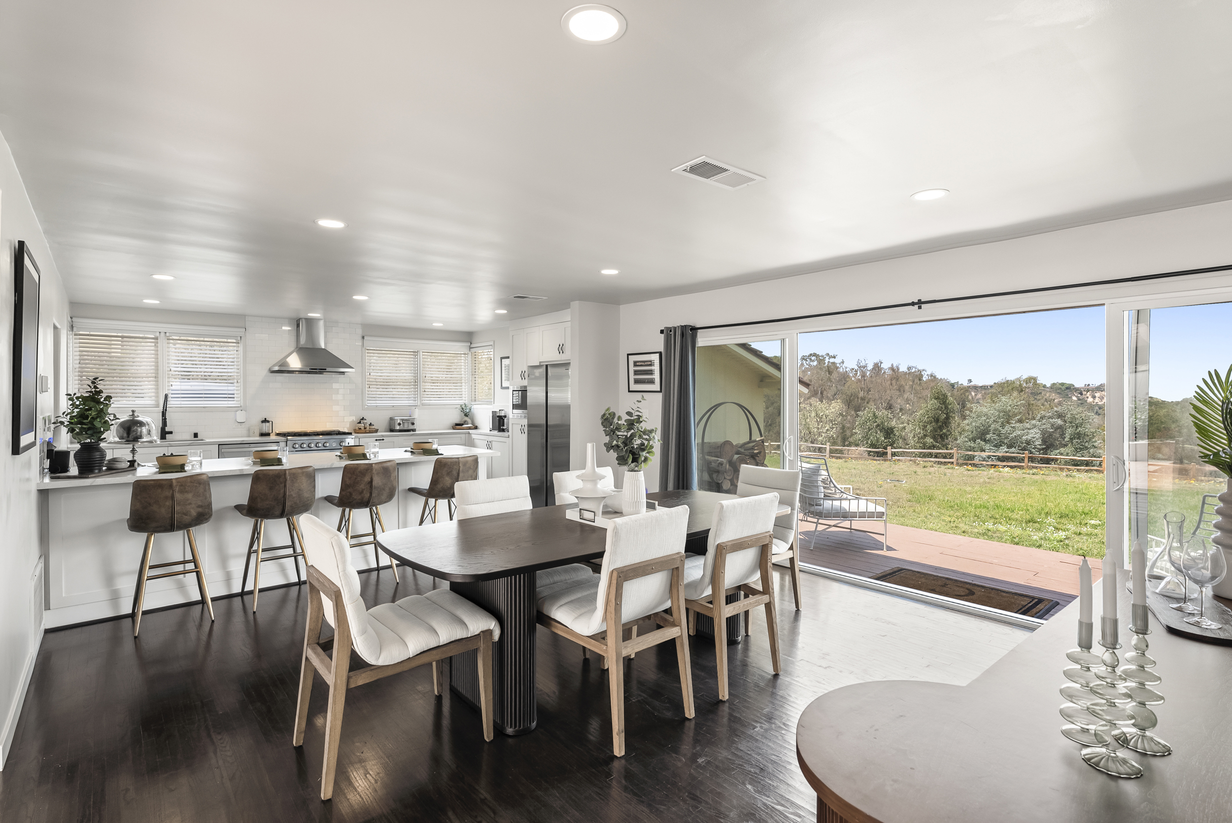 Perched atop 5.26 usable acres in the prestigious West Covenant of Rancho Santa Fe, this beautifully reimagined single-story Modern Ranch-style residence offers timeless design, privacy, and effortless California living. With 4 spacious bedrooms and an open-concept floor plan, the home is bathed in natural light and seamlessly blends indoor and outdoor living. Floor-to-ceiling glass sliders open to an expansive interior courtyard and western-facing meadow, capturing peaceful views and a touch of...