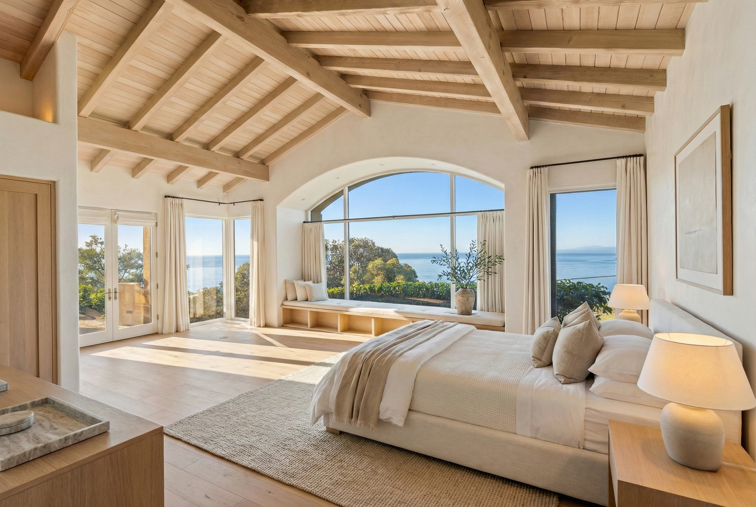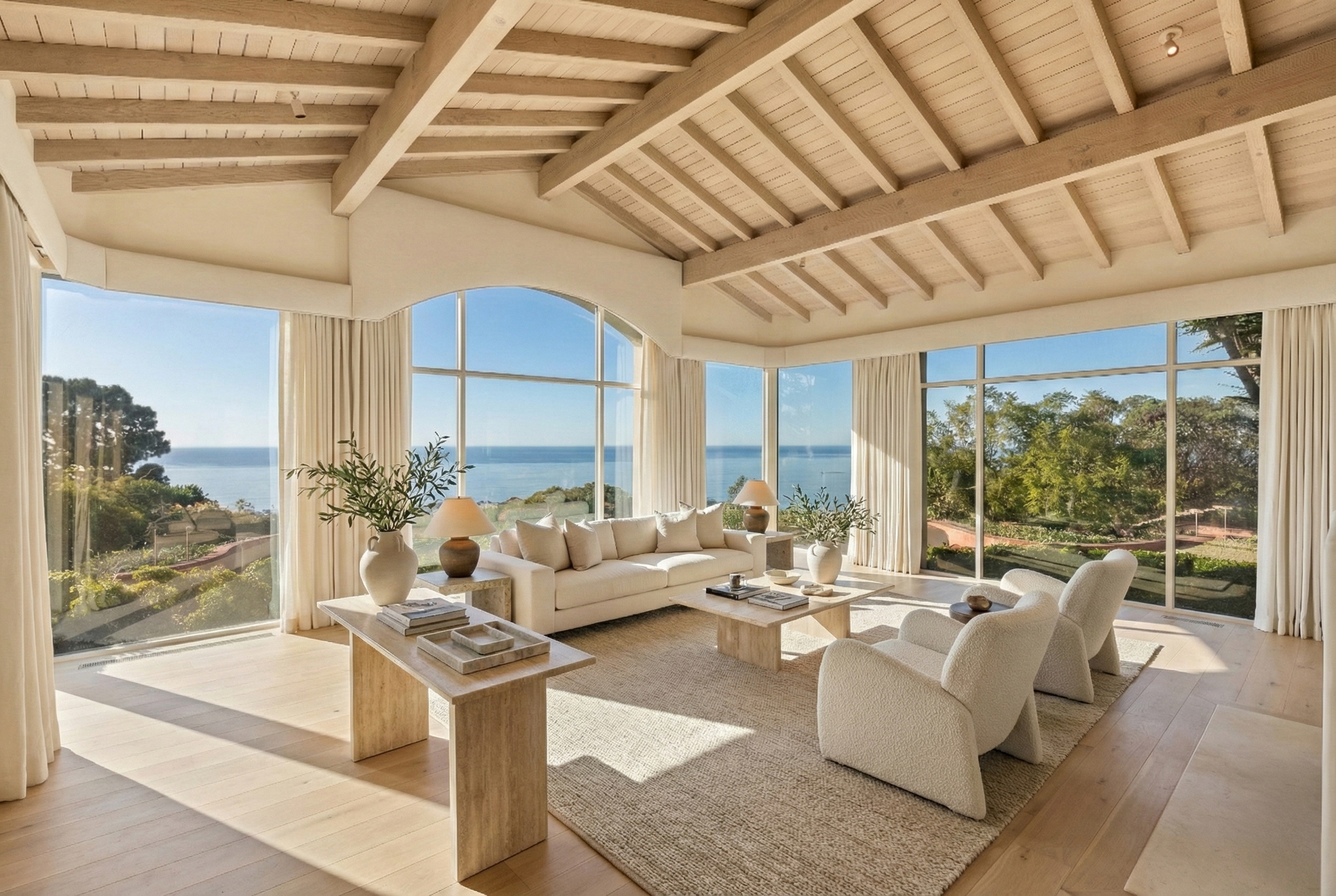 From this singular vantage point—soaring above the surrounding landscape—you experience what few properties can offer: the sensation of living above the clouds, with panoramic ocean, coastline, and sunset views unfolding from nearly every room, including the residence and pool house alike. The elevation is no accident. It is, in fact, the very reason this site was chosen.