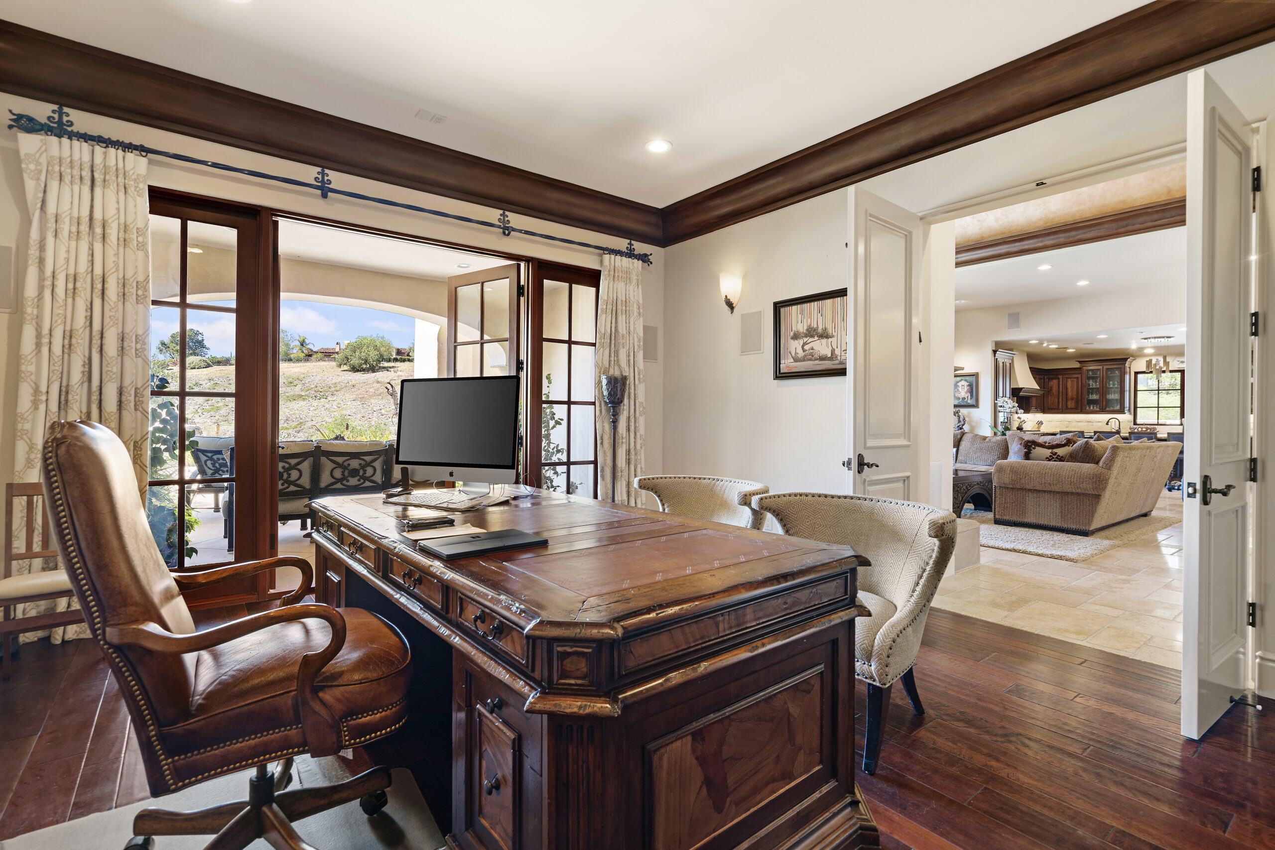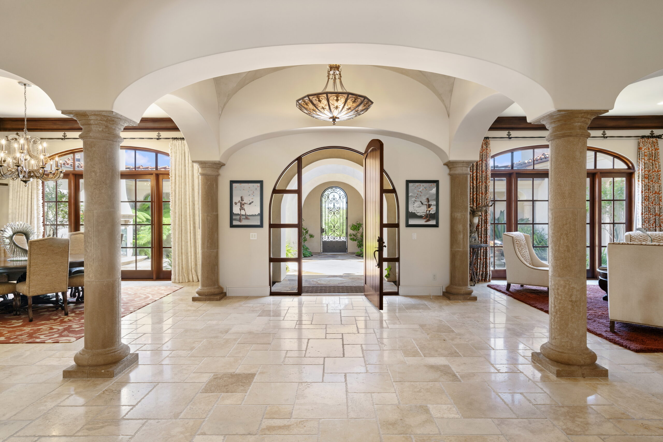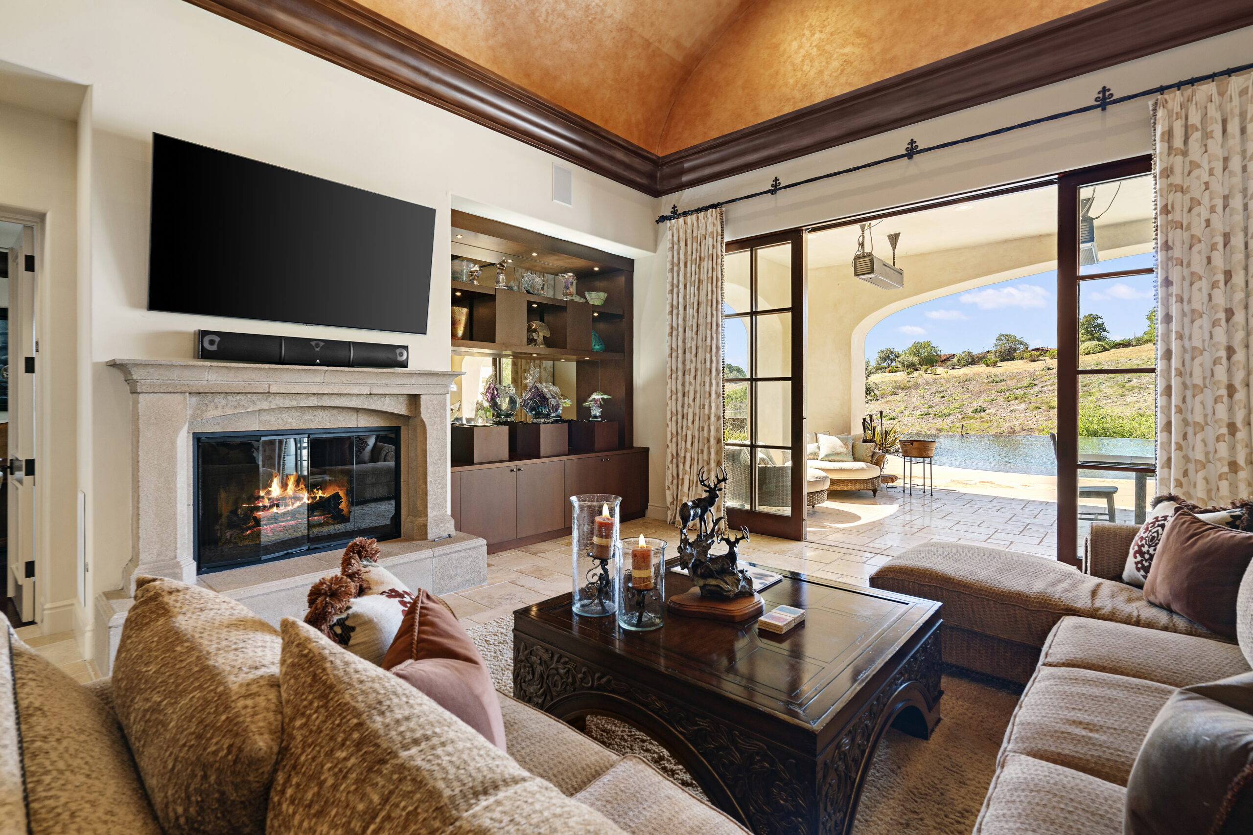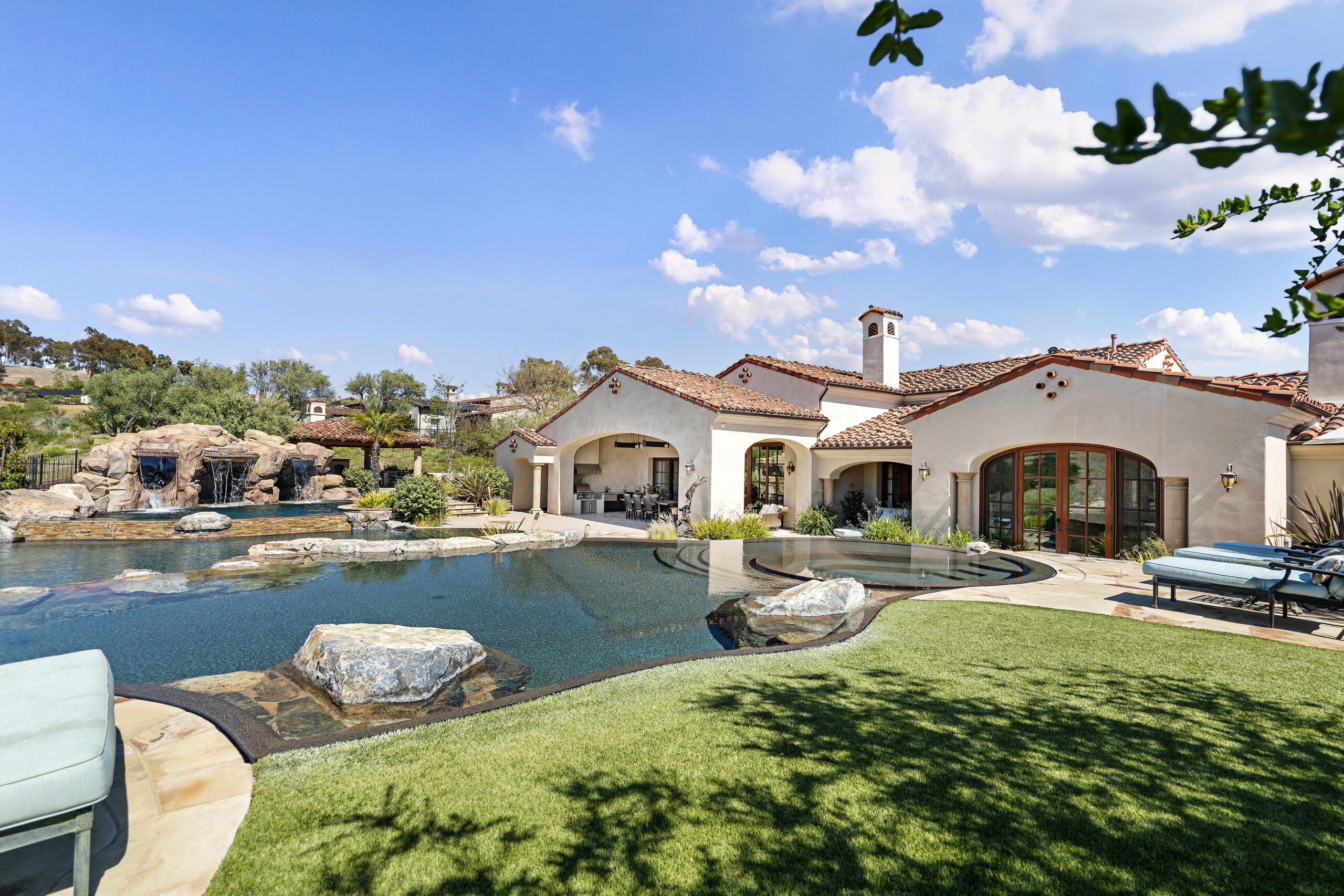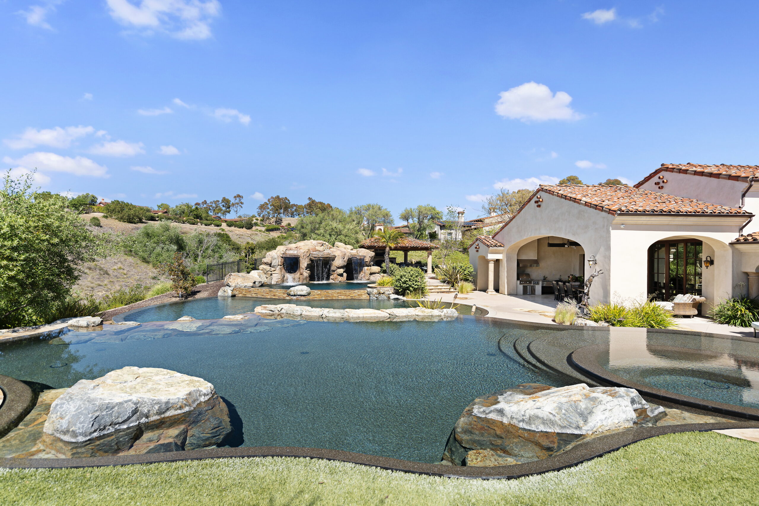 SOLD! Nestled in the prestigious gated community of Santaluz, this custom-built estate was designed for luxurious living and ultimate entertaining. The home welcomed guests with a charming central courtyard, warm fireplace, and serene water features leading to an inviting entry. The entertainer’s paradise featured an oversized infinity-edge pool with waterfalls, a grotto spa with TV and slide, a fire pit, a built-in cooking station, a covered loggia with a fireplace, a pizza oven, and a private guest casita—all set on 1.5 acres of pure tranquility. The gracious primary suite offered a hand-crafted walk-in closet, heated stone floors, and a spa-like bath with a relaxing fireplace. Thoughtfully designed on one level, the home boasted beautiful bedroom suites, a dedicated office with custom built-ins, French doors throughout, beamed ceilings, stone fireplaces, a temperature-controlled wine cellar, and a chef’s kitchen with a grand island flowing into the expansive family room with custom built-ins and a large sit-down bar leading seamlessly to the heated outdoor patio. Santaluz is one of the nation’s premier private golf and lifestyle communities, offering an unparalleled recreational and social experience. With panoramic golf, ocean, and coastal views, 44 miles of hiking and biking trails, acres of preserved land and parks, two stunning clubhouses, a resort-style spa, and a private 18-hole Rees Jones Championship golf course, Santaluz provides a daily adventure in luxury. The seller had paid off Mello Roos, making this an exceptional opportunity for the new homeowner to enjoy unparalleled value and lifestyle.