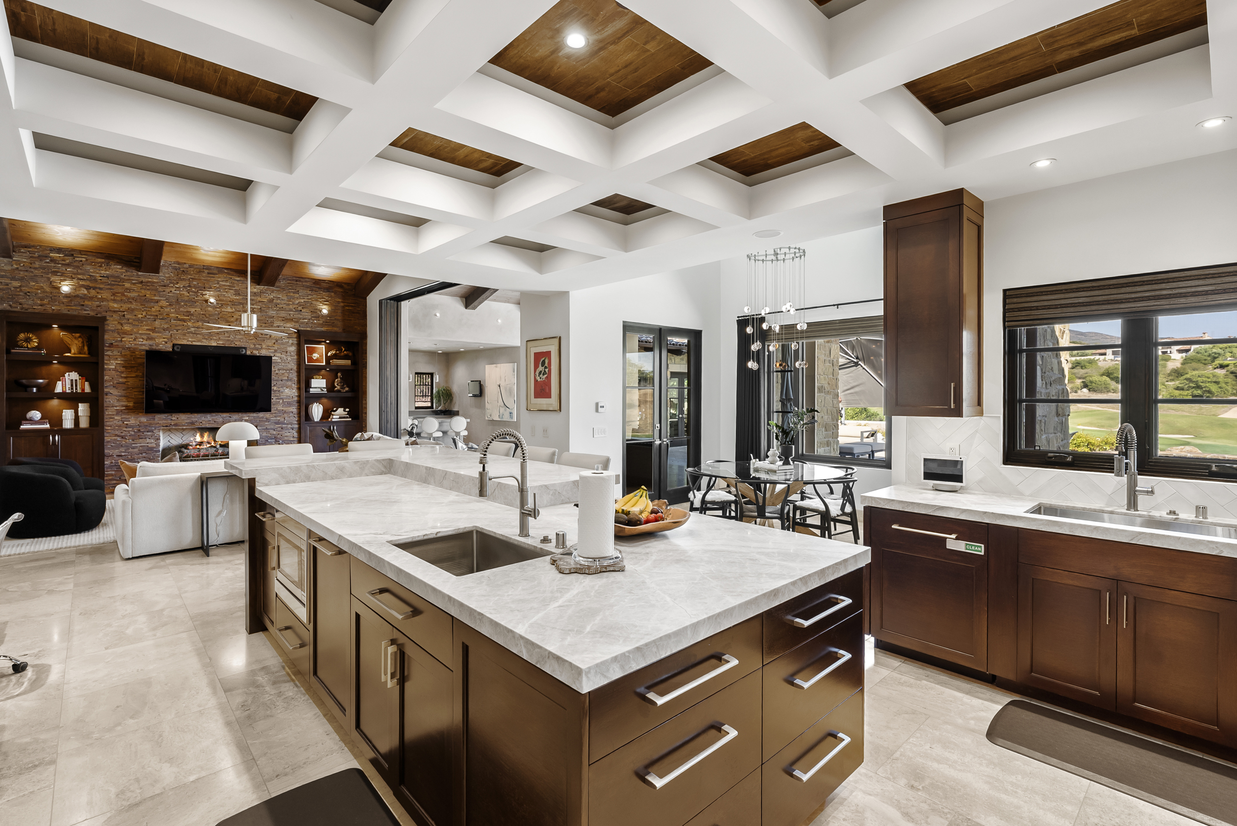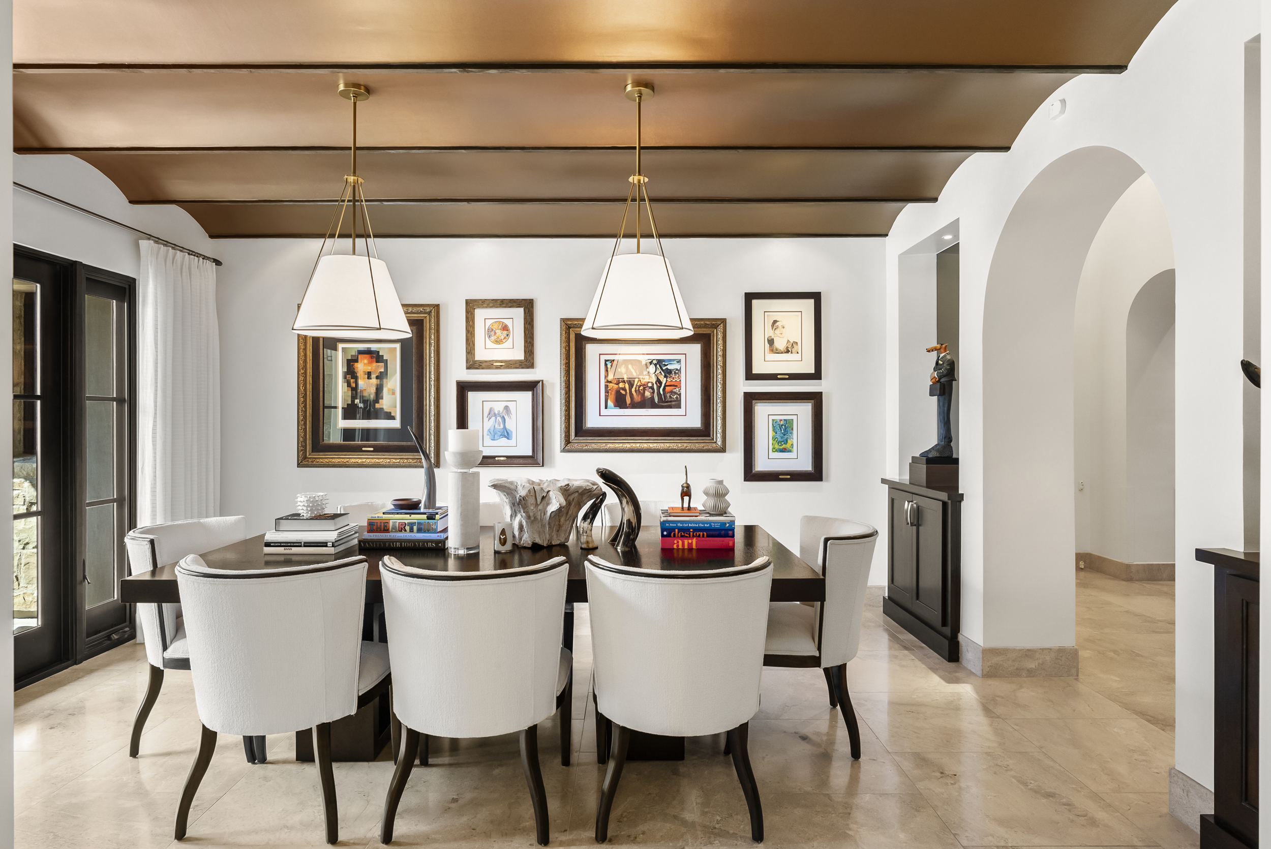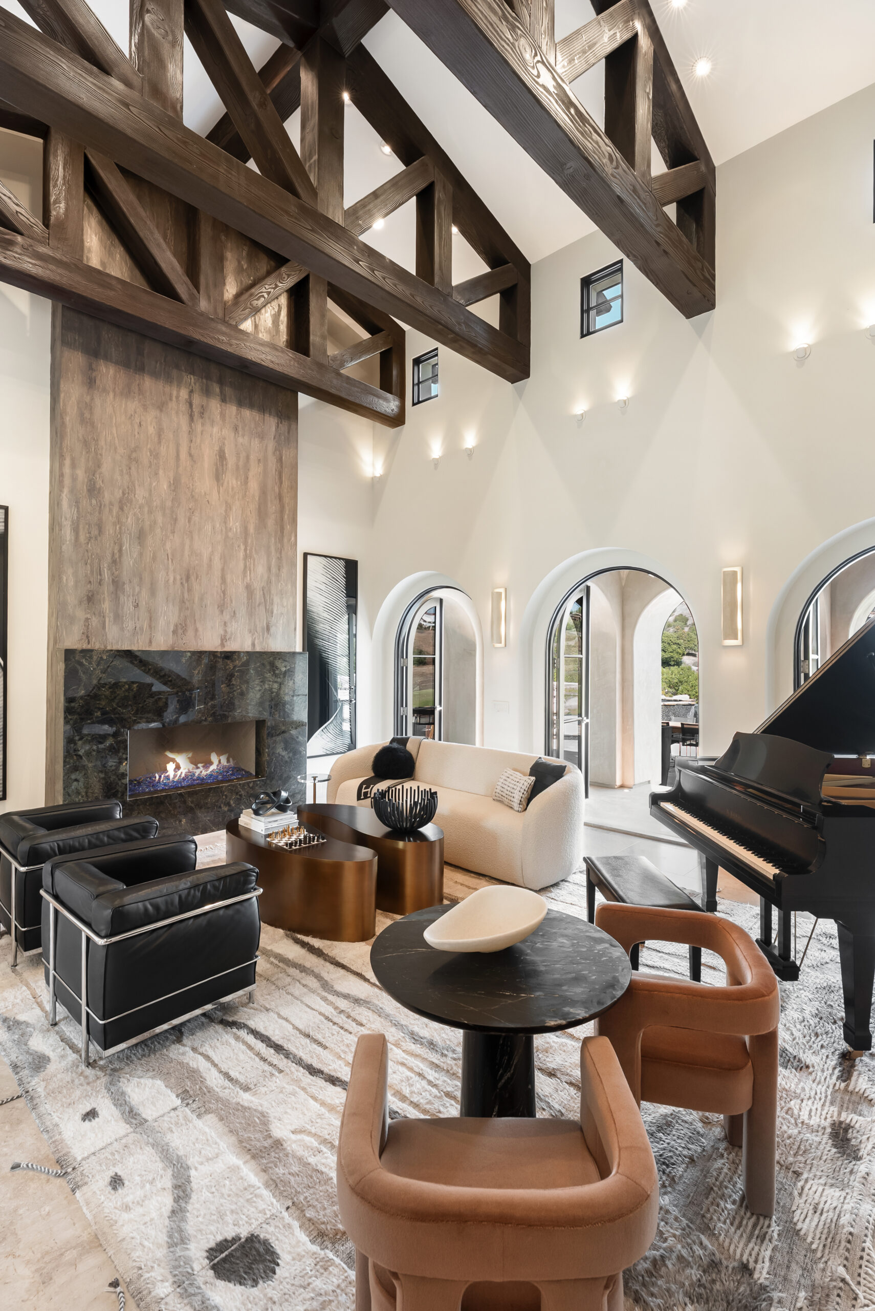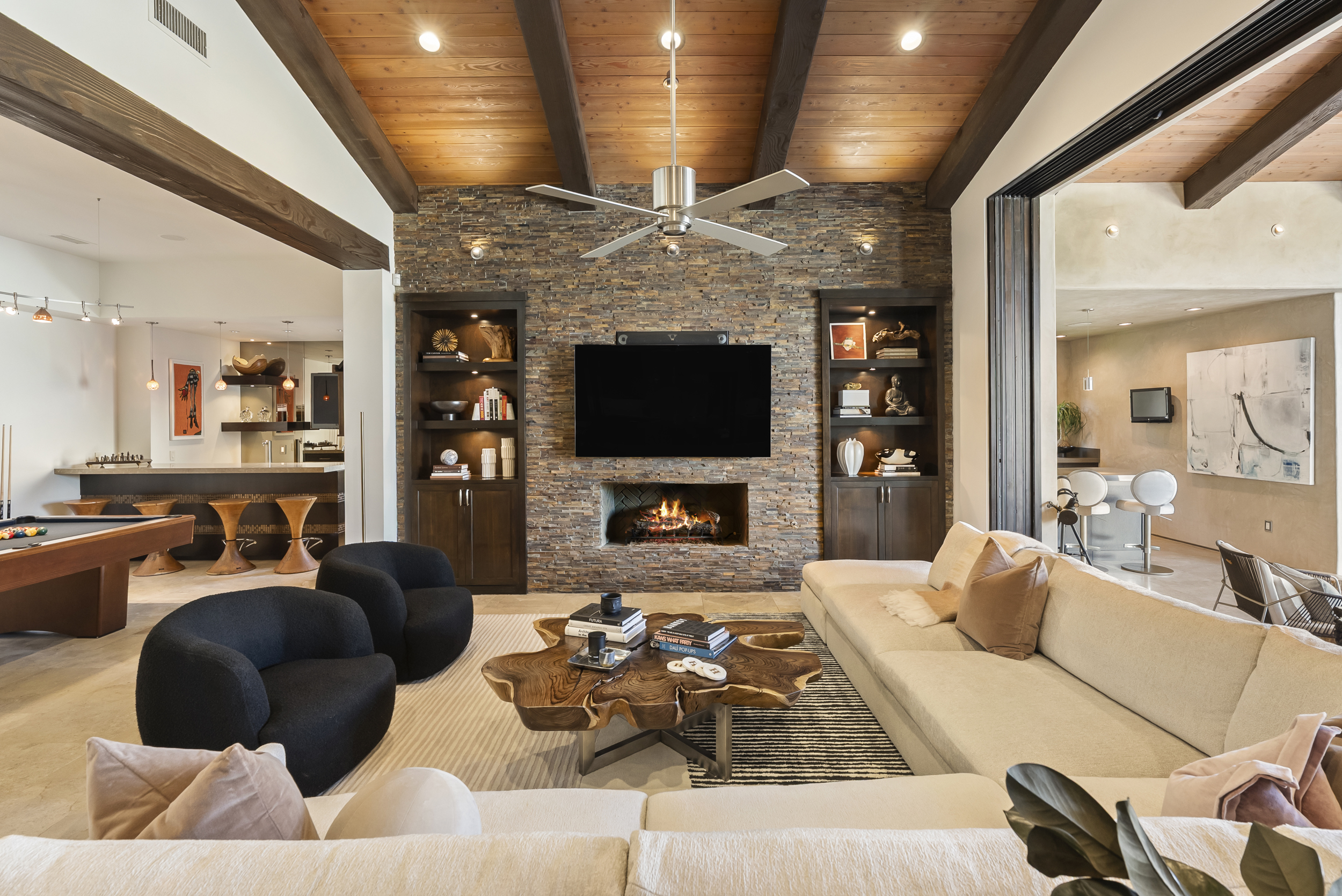 Designed by Steve Murcko & Associates, the European-inspired estate reflects luxurious architectural attention to detail, from soaring vaulted ceilings to striking groin vault accents, complemented by arched doorways, custom built-ins, and designer stone finishes that create both intrigue and a welcoming atmosphere . Interiors unfold with a seamless flow, equally suited for intimate gatherings and large-scale entertaining, with multiple fireplaces, a wine cellar, a billiards room with wet bar, state-of-the-art theatre and a Savant whole-home entertainment system setting the stage for everyday living and celebration alike.