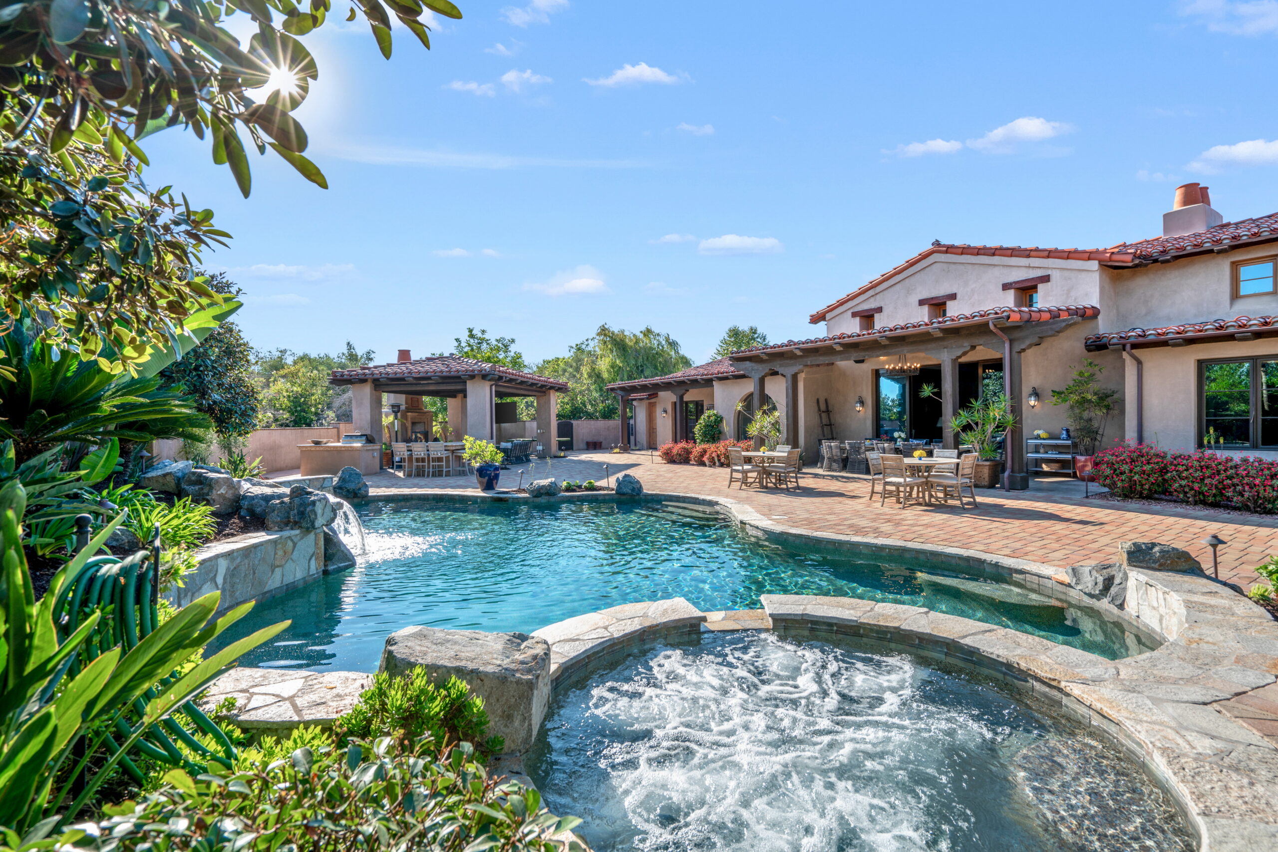 SOLD! This pristine 2-acre south-facing estate in Santaluz offers an unparalleled resort-style living experience. Designed for seamless indoor-outdoor entertaining, the all-one-level custom home features an inviting outdoor living room with a fireplace and TV, a brand-new permanent ping pong table, a pickleball court, and a fire pit perfect for family gatherings. The luxurious primary suite includes a private office and coffee bar, while four spacious en-suite bedrooms and a detached casita prov...